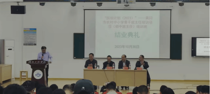 2023年10月30日,在威廉体育williamhill书记张振林主持下,“国培计划(2023)”——黄冈市农村中小学骨干班主任培训(初中班主任)项目威廉希尔williamhill培训班结班典礼威廉体育williamhill报告厅隆重举行。参加本次结业典礼的人员有威廉希尔williamhill继续威廉体育williamhill涂国平经理、威廉体育williamhill孙平经理,威廉体育williamhill培训项目负责人王成营教授和来自黄冈市各农村中小学的98名国培学员。