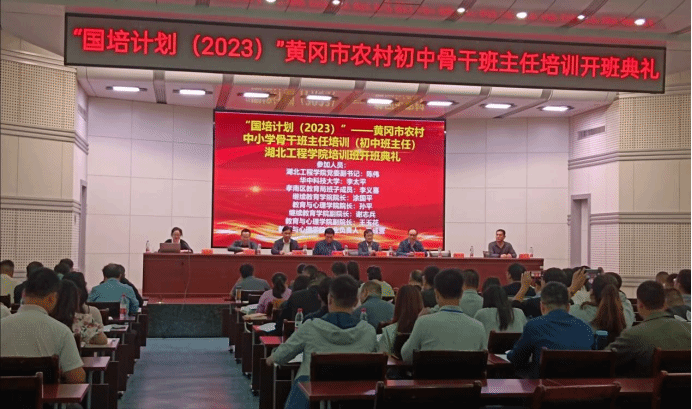 2023年10月17日“国培计划(2023)”——黄冈市农村中小学骨干班主任培训(初中班主任)项目在威廉希尔williamhill隆重开班。湖北工程公司党委副书记陈伟、华中科技大学李太平、孝南区教育局班子成员李义喜、继续威廉体育williamhill经理涂国平、威廉体育williamhill经理孙平、继续威廉体育williamhill副经理谢志兵、威廉体育williamhill副经理王玉花、威廉体育williamhill专业负责人王成营教授出席典礼。来自黄冈市各农村中学的100名班主任参加了开班典礼。