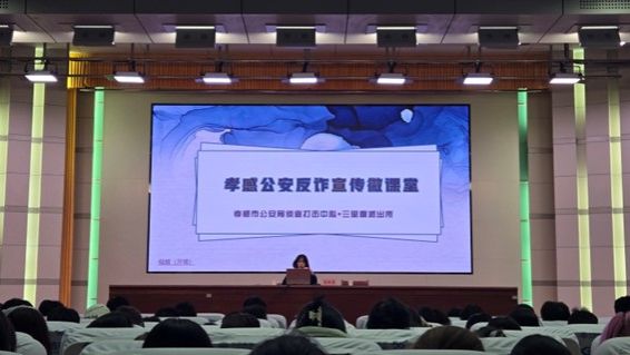11月26日晚上七点,公司在图书馆报告厅举办了一场别开生面的安全教育讲座——“孝感公安反诈宣传微课堂”。本次讲座不仅吸引了公司100名师生积极参与,还吸引了来自其他公司的众多听众,现场座无虚席,气氛热烈。