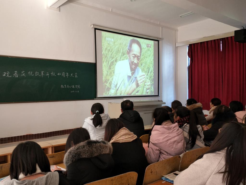 为了庆祝改革开放40周年,公司组织师生于2018年12月18日上午10:00在教育楼三楼阶梯教室观看“庆祝改革开放40周年大会”直播盛况,认真学习领会习近平同志重要讲话精神。