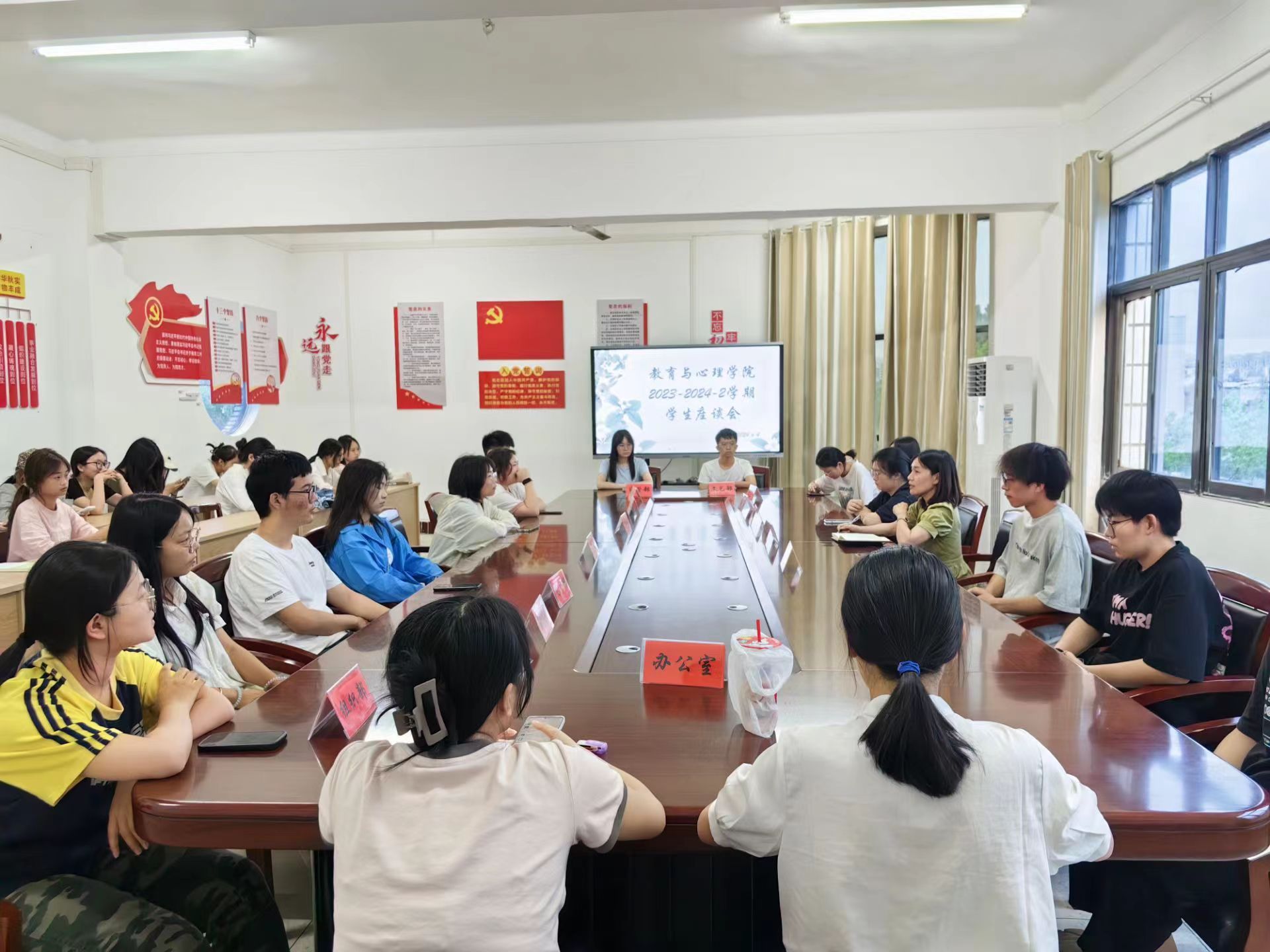 6月4日,院团委于403会议室举办了一场座谈会,员工会各部门、各班级员工代表及团委书记魏伶俐参加座谈会。座谈会旨在强化员工干部作为师生联系桥梁的作用,强化员工会与各班级之间的沟通和交流,同时了解大家在工作中、学习中以及生活中遇到的困难和问题,并进行探讨和交流。