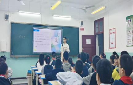 “我讲的第一课是《灯光》。最开始的时候,我信心满满地准备教案和ppt,上网观看了许多优秀教师的教学视频。但是我越临近上课越紧张,但是总不能一直是“纸上谈兵”吧,总要上讲台的。我不断的看教材、看教案,害怕自己忘记内容。最终,我走上讲台,课堂刚开始我紧张的腿都发软了,但是我看见班上的同学们都积极配合我,于是我慢慢稳住阵脚,顺利完成了我的第一节课。课后,胡老师耐心指导我,她指出了我的不足之处,也肯定了我的优点。”