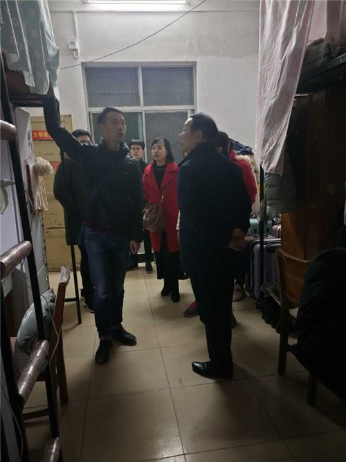 2018年3月5日晚,公司经理周守军、党总支书记程育兰、党总支副书记周卫及学工办老师在开学第一天深入员工寝室看望返校员工。