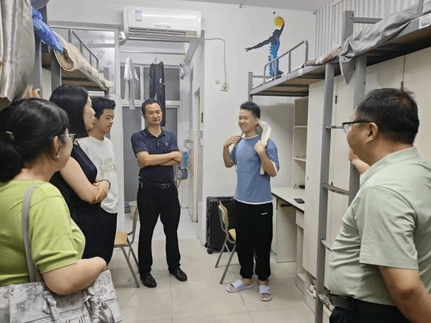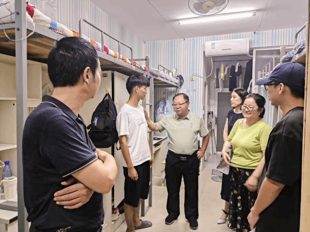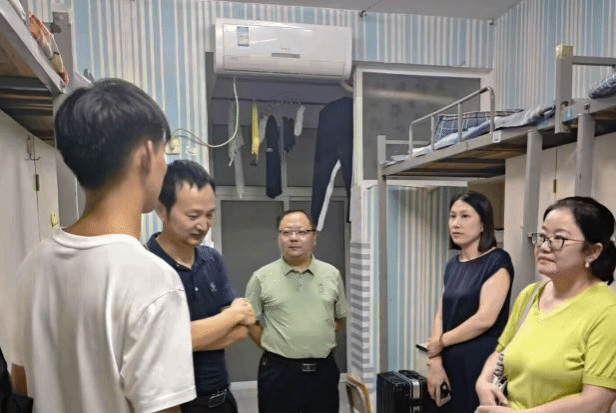 领导和老师们逐一走进宿舍,与新生们进行了亲切而深入的交流。他们细致询问了新生们初入校园的感受与适应情况。同时,领导们还亲自检查了宿舍的各项设施,为新生们营造了一个安全、舒适的居住环境。公司领导和老师们表示,公司会尽一切力量为新生打造“温馨如家”的宿舍环境,让新同学们尽快适应老员工活。